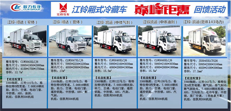 好消息程力冷藏車廠攜手江鈴冷藏車“巔峰鉅惠”回饋活動!冷藏車價格直降3000-8000元。真正做到感恩回饋。此次程力冷藏車活動日期為2022年9月1日-12月31日,拿起電話撥打4006009760,即可享受特價!史無前例的巨大優(yōu)惠!不容錯過。具體冷藏車價格可隨時咨詢我們。