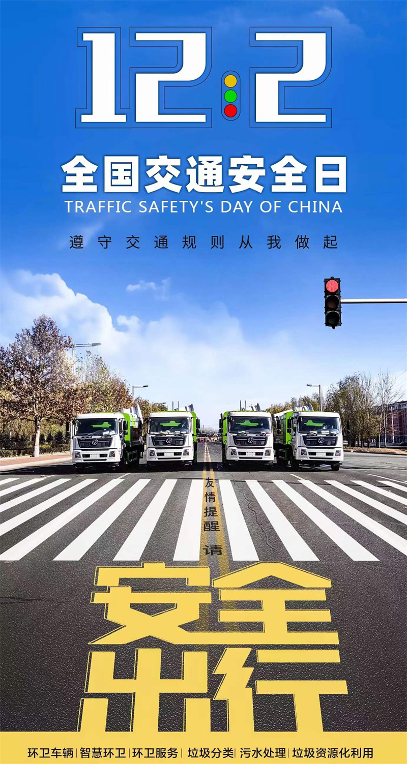 12月2日全國交通安全日,程力集團在此提醒大家安全出行,遵守交通規(guī)則從我做起。程力集團環(huán)衛(wèi)車輛、環(huán)衛(wèi)服務(wù)、垃圾分類、污水處理、垃圾資源利用回收領(lǐng)航者。