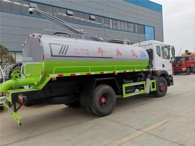 吸糞車上裝配置:以上吸糞車罐體采用機器壓板一次性成型技術,采用先進旋邊機,罐體包罐機工藝保證了罐體制作的精度和美觀。全國獨有烤漆工藝,防腐除銹,多層底漆、面漆噴涂。污罐:Q235武鋼5MM厚碳鋼板,標配采用億豐大功率5噸真空泵(可選用億豐SK-6/SK-9水循環(huán)泵),油水分離器,防溢閥,視糞管,洗手水箱,吊桿座可270度旋轉,尾部一個200排糞口氣缸控制帶駕駛室操作,配一根6米吸污管,罐體封頭一次壓鑄成型,具有真空度高、噸位大、效率高、用途更廣泛的特點。