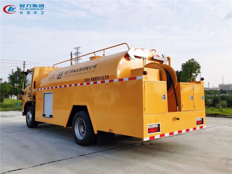 多利卡高壓清洗車專用部分:罐體實(shí)際容積約:7.5立方,采用管道疏通專用高壓柱塞泵,額定壓力:16-24Mpa ,流量:170-215L,膠管長度:60m ,卷力:1800 N ,膠管內(nèi)徑:φ19 mm ,接頭型式 :0 ,卷管速度:0-25m/min ,孔夾角度:15°,25° 推進(jìn)力:≥180 N 主要用于清洗城市下水道的沉積物,管道疏通工作原理是利用水的反推動(dòng)力達(dá)到疏通下水道的作用。也可用于清洗工業(yè)排液管道、壁面等,并可兼作灑水、運(yùn)水和沖洗公路用,緊急時(shí)可用于救火。 可根據(jù)客戶要求可加裝后高炮灑水裝置。