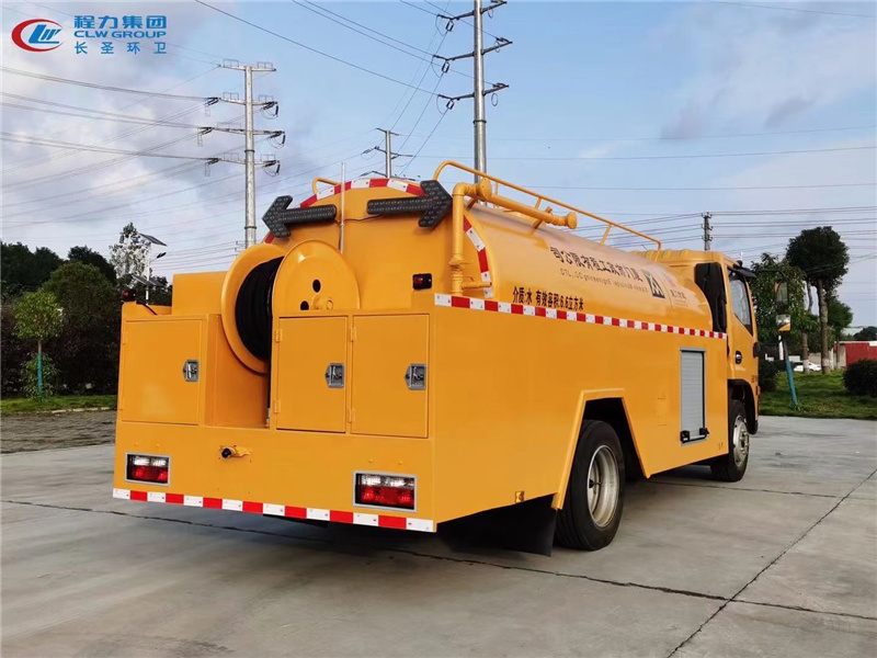 該款多利卡高壓清洗車主要由東風(fēng)系列底盤、水罐、水路系統(tǒng)、液壓放(卷)管器、高壓管等部分組成。它是用高壓水泵抽水罐里的水,排出的高壓水通過高壓膠管壓向噴頭。從高壓噴頭的孔向后噴出水的反作用使噴頭帶著膠管進(jìn)入下水道的深處;同時(shí)沖下水道中的污泥,使它隨著水流入下游沉井達(dá)到清污流通的目的。
