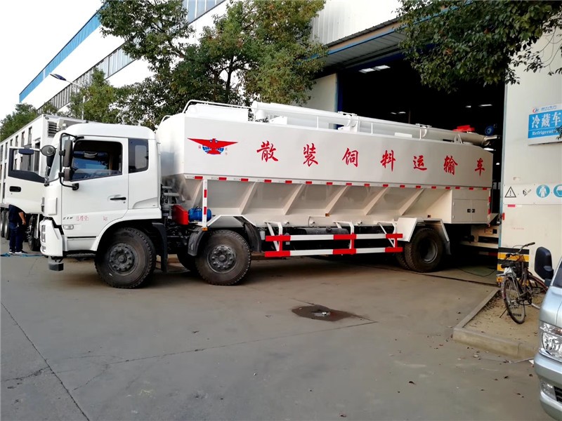 總結(jié):這款東風天錦散裝飼料運輸車適合用于飼料加工廠、養(yǎng)殖場、短途運輸,輸送方式設備,請根據(jù)實際場所選擇。