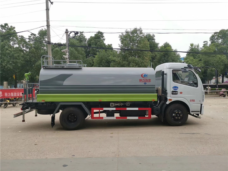 東風(fēng)多利卡灑水車標(biāo)配前沖后灑、側(cè)噴、后置式工作平臺(tái)、平臺(tái)上有高壓水炮,這款車可360°旋轉(zhuǎn),可調(diào)成柱狀最大射程35米,也可調(diào)成霧狀最大射程15米,可調(diào)成:直沖狀、大雨、中雨、小雨、毛毛雨。