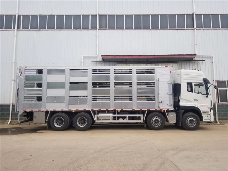 這款東風天錦小三軸30方散裝飼料車運輸時,頂部的螺旋管平臥在罐頂;卸料時則抬起,使管端的出料口與畜禽飼養(yǎng)場貯料罐頂部的進料門相接,駕駛室內(nèi)裝有操縱裝置(操縱裝置也可裝置在罐體尾部),卸料時通過車底的動力輸出軸和減速器來驅(qū)動螺旋,以完成卸料。