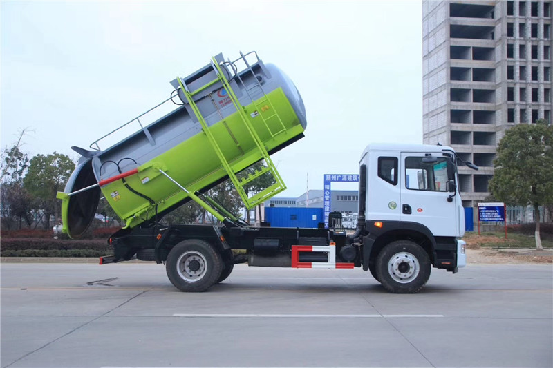 該垃圾車配備玉柴160馬力、康明斯180馬力兩款發(fā)動(dòng)機(jī),9.00R20鋼絲胎,變速箱為東風(fēng)六檔箱、法斯特八檔箱,空調(diào)、ABS、行車記錄儀、中控鎖、電動(dòng)門窗;上裝配置為:圓形罐體,箱體材質(zhì)為5mm碳鋼。(2)長源油泵,江蘇多路閱,國產(chǎn)液壓油缸。⑶液壓舉升卸料,液壓后蓋,后蓋帶密封條。(4)后門液壓鎖緊。(5)拉桿式提升機(jī),可掛240L標(biāo)準(zhǔn)塑料垃圾桶。(6)駕駛室內(nèi)集中電控(提升機(jī)外部手動(dòng)控制),后門鎖緊與后蓋開關(guān)的操作具有防誤操作。