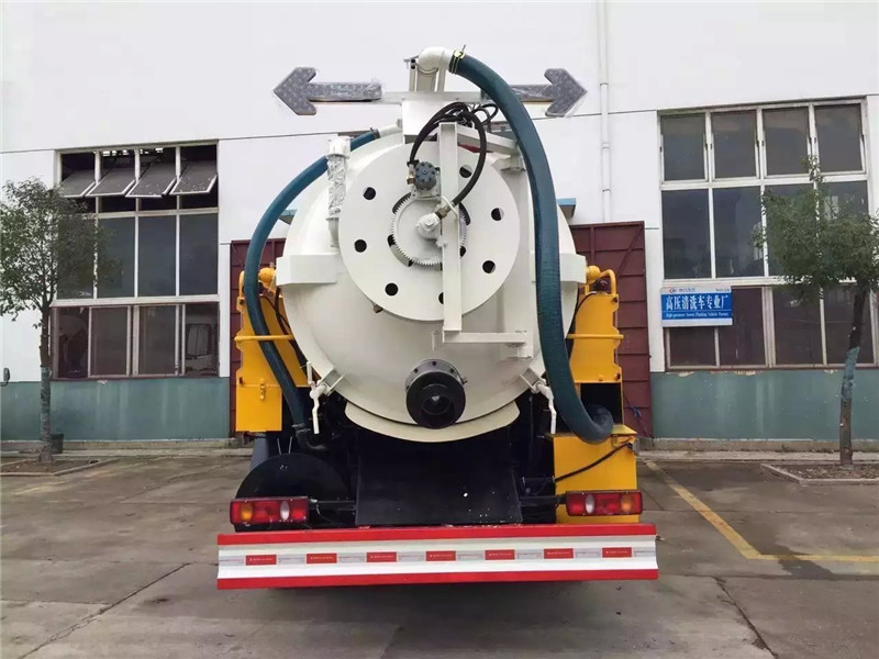 另外,該車污罐:Q235武鋼6MM厚碳鋼板,罐體容積污水罐9個(gè)立方,清水罐3.5立方,采用山東k15的水循環(huán)泵,采用215品孚高壓泵,19高壓管80米,兩根ND100的吸污管標(biāo)配采用億豐大功率10噸真空泵,油水分離器,防溢閥,視糞管,配2根8米吸污管,罐體封頭一次壓鑄成型、罐體帶舉升,后蓋為液壓開啟,罐內(nèi)污物可通過后蓋直接傾倒。尾部一個(gè)150球閥排污口,帶箭頭指示燈,具有真空度高、噸位大 用途更的特點(diǎn)。