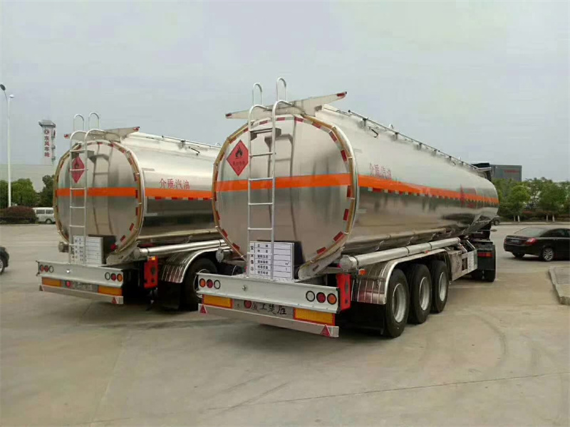 鋁合金半掛油罐六款公告標(biāo)配:二軸(37.3方和44.1方),三軸(41.8方、49.5方、49方、49.2方),罐體采用鋁合金材質(zhì),帶2個(gè)歐標(biāo)罐口,2個(gè)鋁合金海底閥,東風(fēng)鋼圈,風(fēng)神R22.5真空輪胎,富華車橋(加寬剎車片),鋼板懸掛,歐標(biāo)人孔蓋,油氣回收帶下裝料,科密ABS,公告介質(zhì):汽油,柴油。