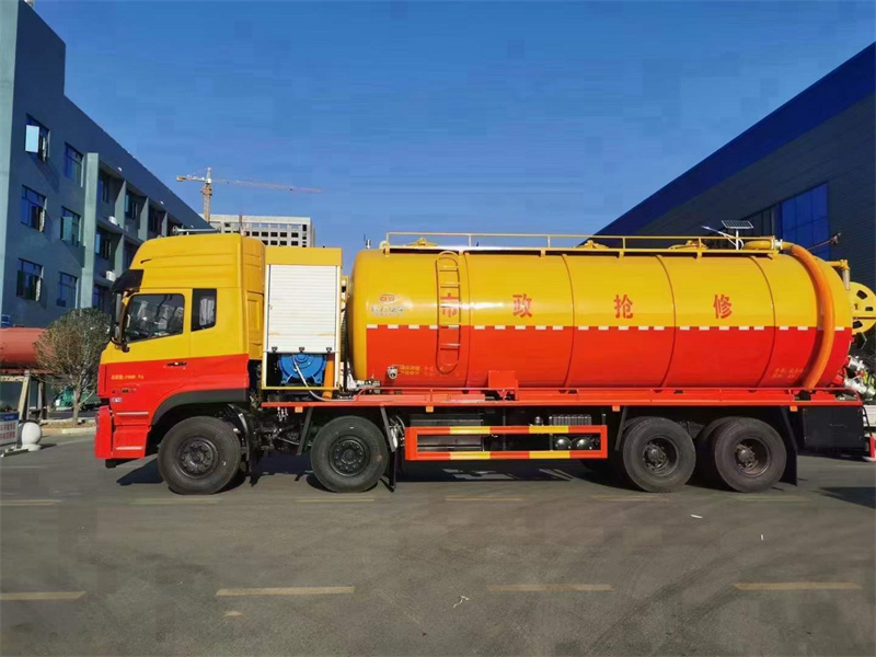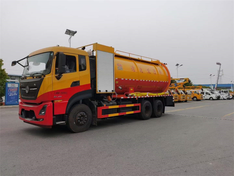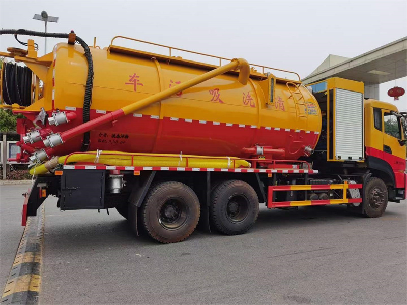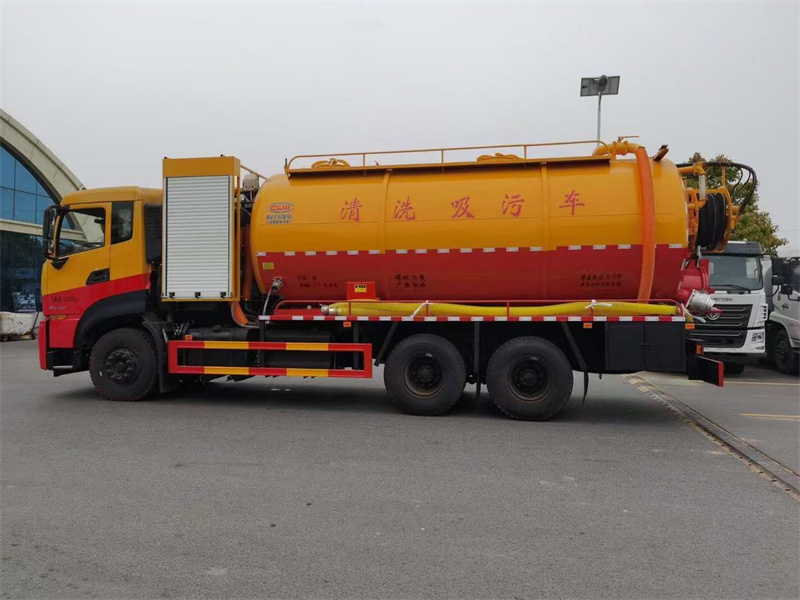 東風(fēng)天龍前四后八清洗吸污車罐體頂部兩側(cè)安裝人行走道,工具箱加大,8m吸污管一根,420馬力副發(fā)配258水循環(huán)泵,尾部兩側(cè)箱體焊裝U型騎馬螺栓。