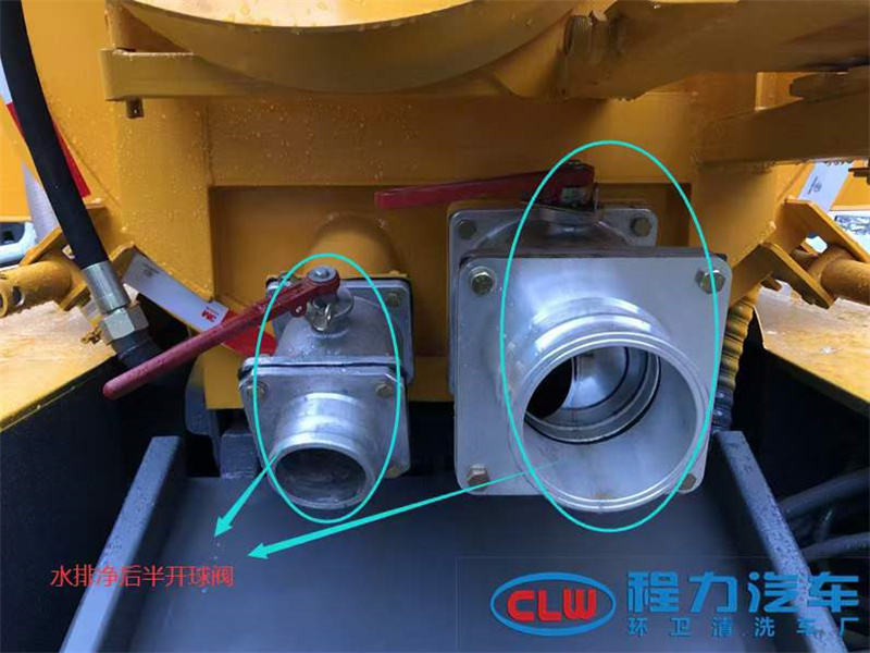2:清洗吸污車車輛使用后,請(qǐng)打開整車所有的放水球閥開關(guān),待放水完畢后,把球閥關(guān)一半保持球閥半開狀態(tài),防止凍裂,以造成不必要的損失