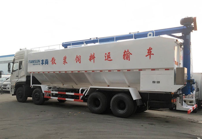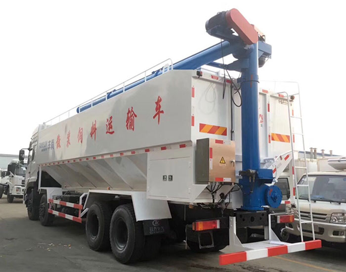 運(yùn)送介質(zhì)品名: 膨化及顆粒飼料、粉料;介質(zhì)密度:500kg-600kg立方米,罐體有效容積:42立方米,罐體外形尺寸:9000×2495×2310(mm),飼料裝載量20-21噸,380V電動絞龍卸料,罐體內(nèi)部可分4倉,裝卸不同種類飼料,垂直卸料高度8.2米,水平工作半徑7.2米。液壓絞龍式適用于無電力配置場所飼料裝卸運(yùn)輸。