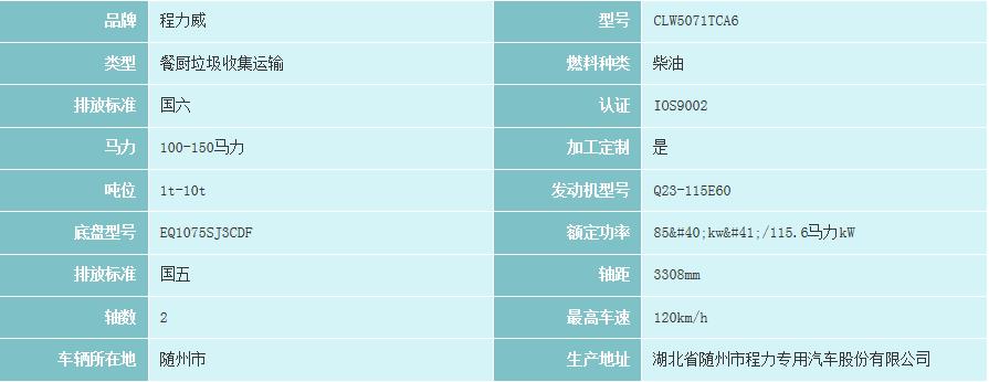 東風(fēng)多利卡D6國(guó)6餐廚垃圾車底盤配置:發(fā)動(dòng)機(jī)采用全柴115馬力動(dòng)力.駕駛室原裝空調(diào),多功能方向盤,方向動(dòng)轉(zhuǎn),電動(dòng)門窗,遙控,中控鎖,MP3,萬里5擋楊變速箱.ABS.氣剎車.東風(fēng)車橋.軸距3308.輪胎700-16.油耗底駕駛舒適.60.70馬每公里6毛。