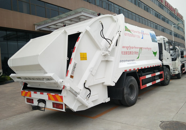 上裝配置:弧形箱體,容積約12-14立方,可裝垃圾10-12噸,采用特種鋼板制作,箱體底板5mm,邊板5mm,廈門銀華油缸,江蘇多路閥,長(zhǎng)源液壓油泵,填裝器舉升油缸帶液壓鎖裝置,采用進(jìn)口西門子PLC電控系統(tǒng)(帶一鍵操作,和手動(dòng)操作兩種控制方式),電控操作盒三只。帶3個(gè)污水收集箱,尾部帶橡膠密封條。填充器加裝后照明燈,箱體油漆及噴字按用戶要求定制。