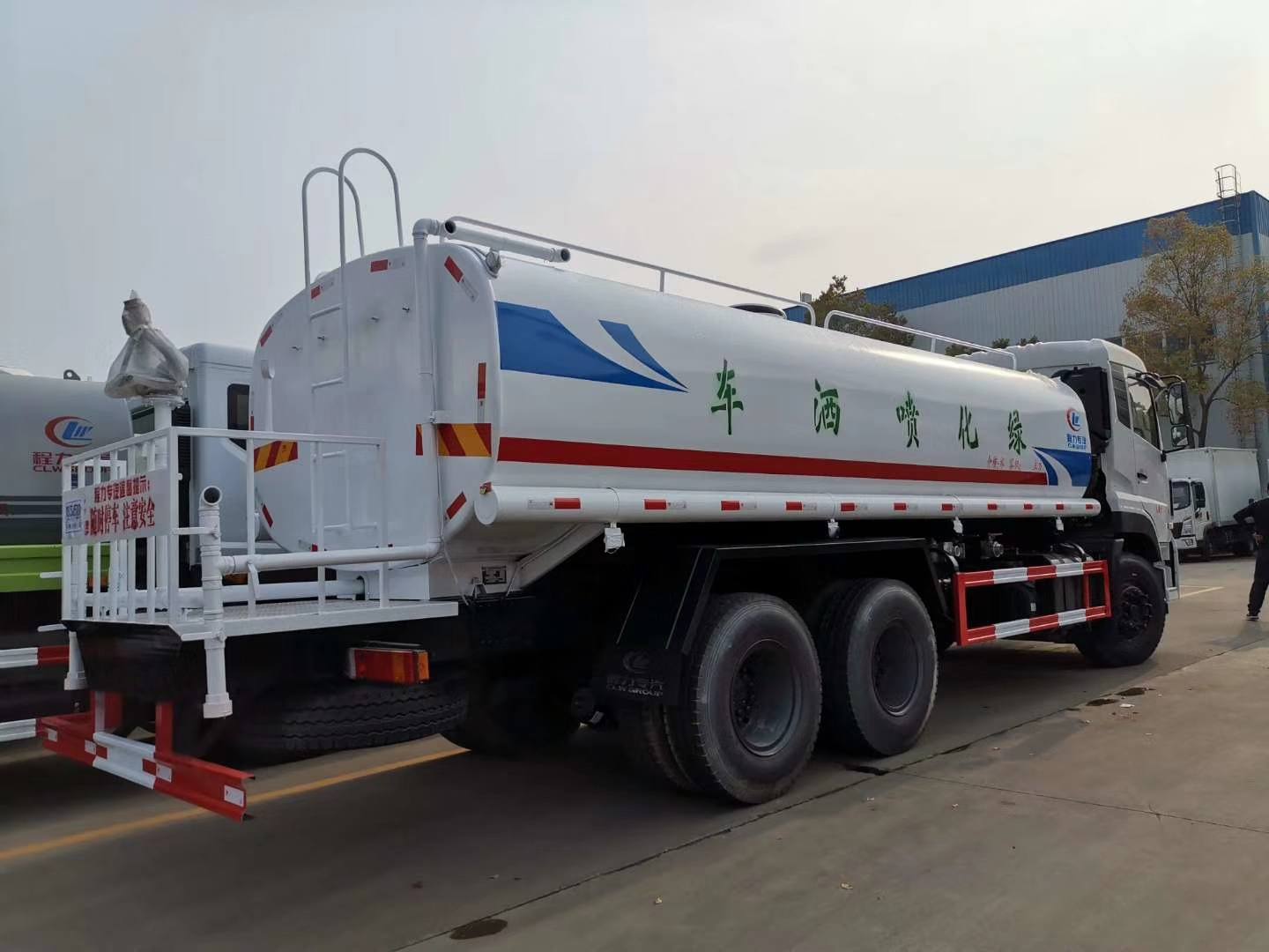 其它 | 1、該車僅選用4350+1350mm軸距;2、罐體有效容積:14.49立方米,當選裝普通后平臺時罐體尺寸(長×長軸×短軸)為(mm):6900×2300×1320,當選裝噴霧機組后平臺時罐體尺寸(長×長軸×短軸)為(mm):6300×2300×1450;3、側(cè)防護及后下部防護裝置均采用Q235B材質(zhì),均采用螺栓連接,后下部防護尺寸:150×50(mm),離地面高度480mm;4、ABS型號/生產(chǎn)廠家:3631010-C2000/東科克諾爾商用車制動系統(tǒng)(十堰)有限公司,ABS 8/東科克諾爾商用車制動系統(tǒng)(十堰)有限公司,4460046450/威伯科汽車控制系統(tǒng)(中國)有限公司;5、該車可選裝:A,后部帶弧形噴霧和LED箭頭指示燈;B,后部帶LED箭頭指示燈;C,后部帶弧形噴霧裝置; D,可選裝新款外觀帶霧炮平臺;6、專用裝置:罐體,主要用于路面灑水及園林綠化;7、隨底盤選裝駕駛室。選裝底盤附件安裝位置及外觀照片。 |