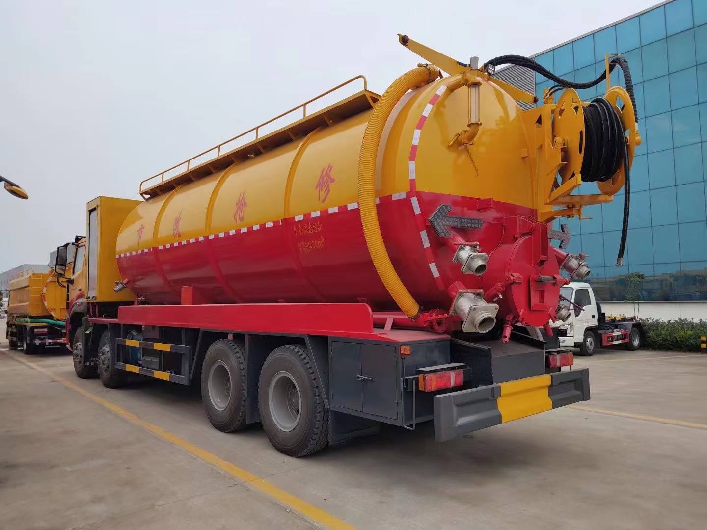 其它 | 該車專用裝置主要為污水罐和清水罐,用于下水道吸污及疏通。罐體尺寸(直段長×直徑)(mm):7100×2350,其中罐體前端為清水罐(直段長3100mm);后端為污水罐(直段長4000mm)。兩罐獨立,且不能同時滿載。清洗功能時用清水罐,吸污功能時用污水罐。污水罐有效容積14.74立方米,介質(zhì):液態(tài)污物,密度:800千克/立方米;清水罐有效容積11.79立方米,介質(zhì):水,密度:1000千克/立方米。側、后防護材料均為Q235,焊接。后防護截面尺寸320×60mm,下邊緣離地高490mm。選裝罐體頂部護欄樣式,選裝側面清洗管,選裝后罐口液壓開啟樣式,選裝后部閥門,選裝后部清洗管卷盤樣式。隨底盤選裝半高頂駕駛室、選裝晝間行駛燈、選裝油浴式空濾器。ABS系統(tǒng)型號為446 004 6300,生產(chǎn)企業(yè)為威伯科汽車控制系統(tǒng)(中國)有限公司。 |