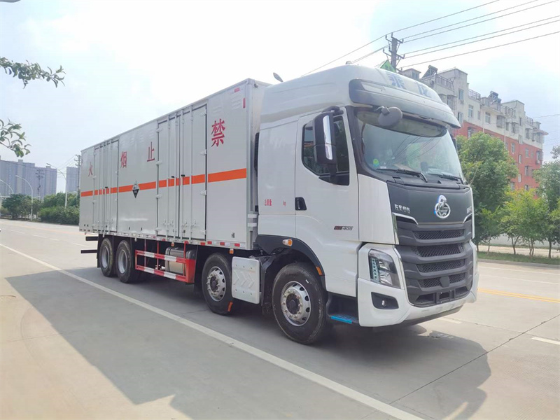 廂體配置:嚴(yán)格按照公告尺寸制作,外板采用1mm厚冷軋板有一次性成型的百葉窗,內(nèi)飾為導(dǎo)電性能良好的鋁板有透氣孔,內(nèi)襯為矩形管骨架牢靠穩(wěn)定,內(nèi)部填充為透氣防潮阻燃的擠塑板,四種材料經(jīng)現(xiàn)代工藝復(fù)合而成,廂體外部上下鋁合金型材包邊,底板和車廂前下部鋪橡膠皮,后門雙開,右側(cè)叁個(gè)雙開門,內(nèi)部有固定貨物的臥環(huán),車輛外部有靜電帶、滅火器、防火罩,車廂內(nèi)安裝煙霧報(bào)警器和門防盜報(bào)警器,嚴(yán)格按照國家危險(xiǎn)品相關(guān)法規(guī)張貼。