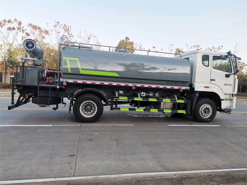 9、(選擇項)后平臺可加裝30型柴油全自動霧炮機,操作靈活,使用安全可靠,霧化距離25米-30米左右(霧化射程會受濕度、溫度、風(fēng)速等各方面天氣因素的影響,另外天氣干燥地區(qū)一部分在空氣被蒸發(fā)掉),遙控和人工控制操作,可隨意控制調(diào)節(jié)水平旋轉(zhuǎn)噴霧角度。