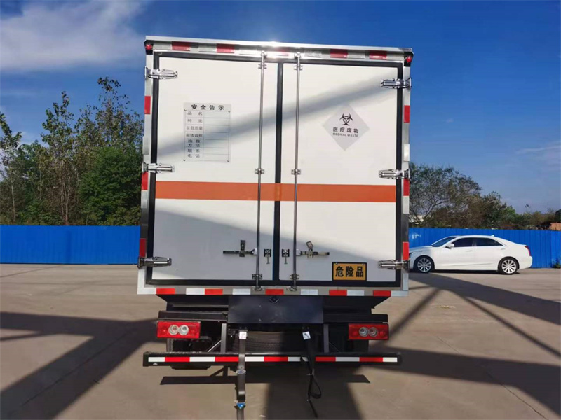 廂體外玻璃鋼內(nèi)不銹鋼,中間填充高密度保溫材料,后門為雙層密閉結(jié)構,并采用迷宮式封條,使車廂完全封閉。箱內(nèi)安裝卡槽,地漏帶污水箱,廂內(nèi)安裝紫外線消毒燈,加裝自動消毒噴霧器(噴頭安裝在箱內(nèi)頂部)。車廂體內(nèi)裝配紫外線消毒殺菌設備。醫(yī)療廢物轉(zhuǎn)運車采用帶有“醫(yī)療廢物”標識。整車帶零下5度機組,嚴格按照公告生產(chǎn)。