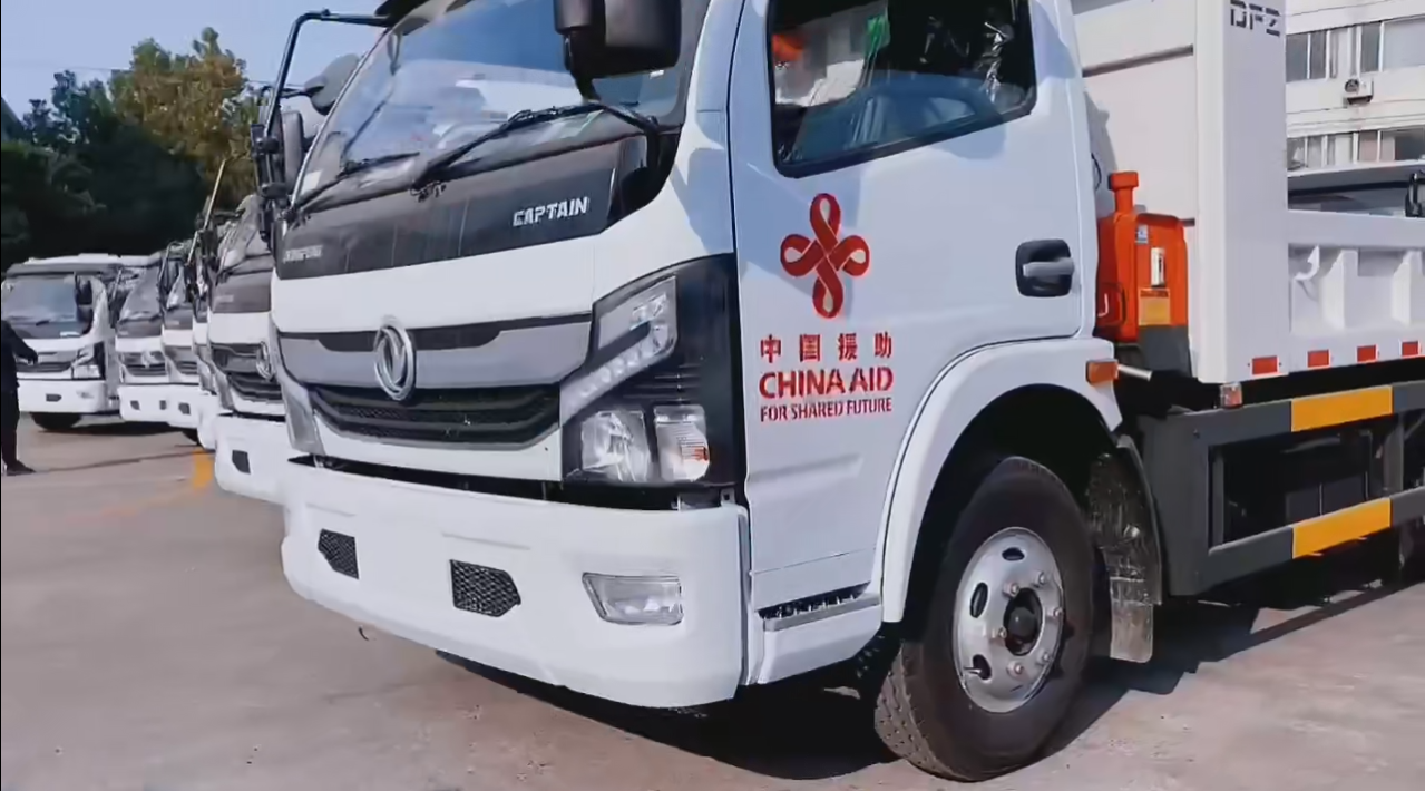 中國對湯加王國援助項(xiàng)目,20臺右駕自卸車發(fā)車。