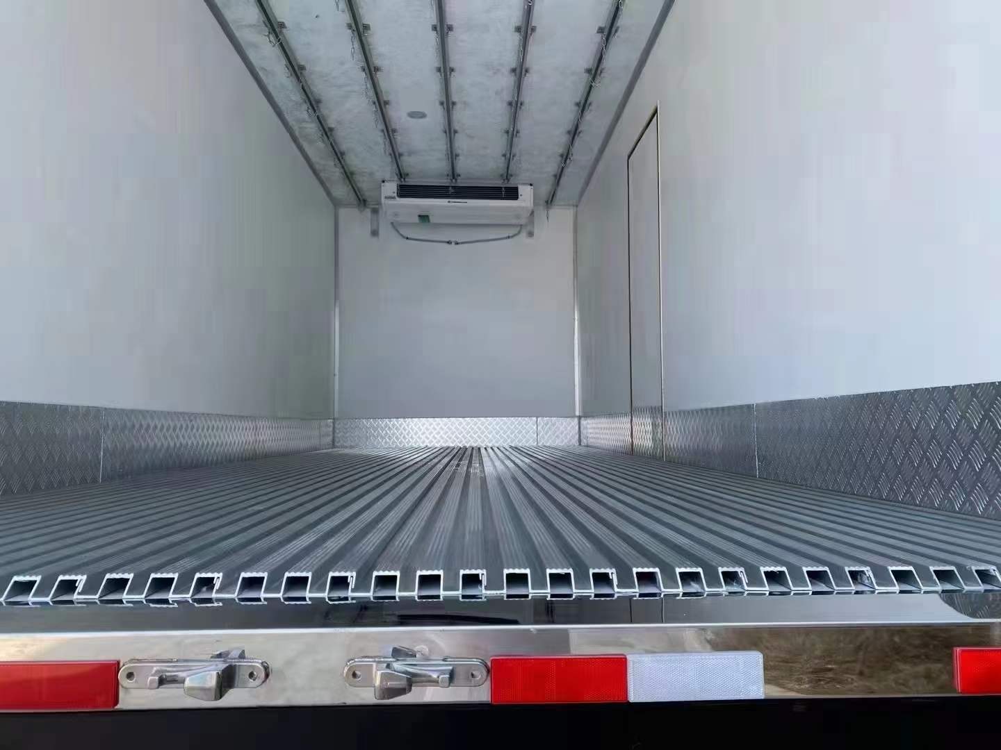 選裝底部鋁合金通風(fēng)槽:如果跑長途或者運(yùn)輸帶有熱氣的貨物,不加通風(fēng)槽,那么只能體現(xiàn)使用冷藏車?yán)洳貦C(jī)組30%的價(jià)值。