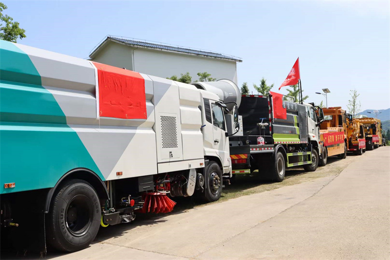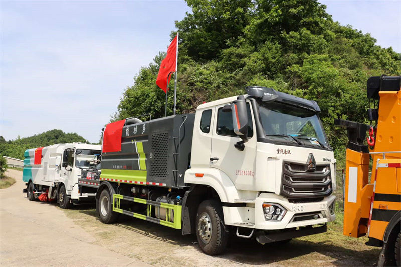防汛搶險人員和我公司派出的道路清障車、多功能抑塵車、掃路車配合官兵實地演練。