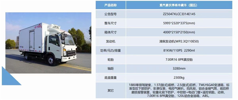 重汽豪沃悍將冷藏車(國五)