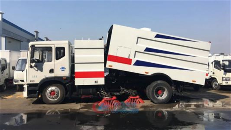 這款東風多利卡洗掃車可吸入粒度100mm,單排可以前翻駕駛室,發動機功率為115千瓦,156馬力發動機,東風洗掃車采用萬里揚6檔變速箱,東風邦樂5.5噸后橋,8.25R16鋼絲胎,帶動力轉向,氣制動,ABS,駱駝電瓶,可選裝空調。 中置兩掃盤,中置寬吸嘴,吸盤內置高壓噴桿,副發動機為康機140馬力發動機,清洗寬度3.5米,高壓沖洗高度≥21米,水罐容積4噸,垃圾箱容積5噸,最大清掃能力7萬平方米/小時。