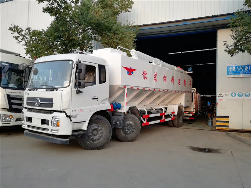 這款東風天龍散裝飼料運輸車主要用于飼料的運輸作用,主要專用裝置是飼料倉和上下料的絞龍機構。