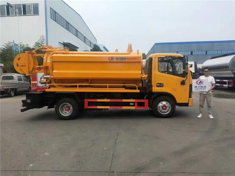 清洗吸污車污罐內(nèi)部鋪不銹鋼鋼板,防腐蝕罐底,便于卸料方便,罐內(nèi)帶爬梯