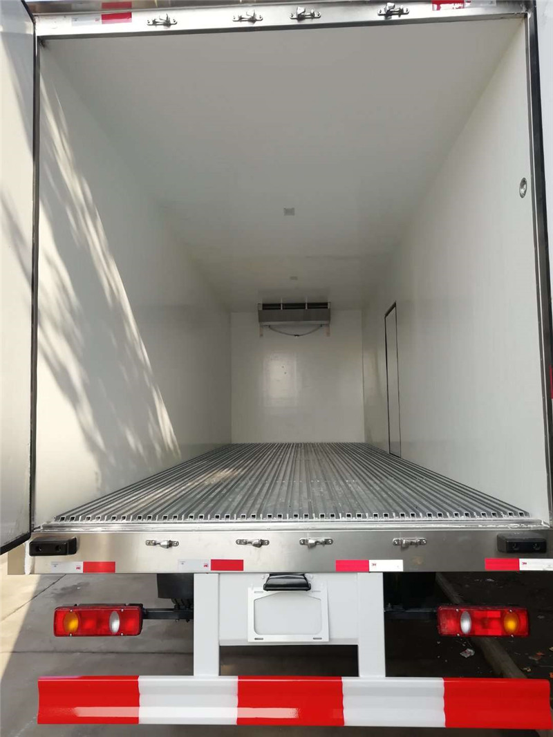 該車可選裝配置活動框架式肉鉤,對接式滑軌,直排式滑軌,通風(fēng)槽,隔溫板,內(nèi)不銹鋼。國內(nèi)外品牌制冷機(jī)組-5°-15°可選。這款車整車尺寸:5635×1765×2770(mm),廂體尺寸:3500×1700×1700(mm)。密封性:冷藏車的貨柜需要保證嚴(yán)格的密封來減少與外界的熱量交換,以保證冷藏柜內(nèi)保持較低溫度。制冷性:加裝的制冷設(shè)備與貨柜連通并提供源源不斷的制冷,保證貨柜的溫度在貨物允許的范圍內(nèi)。