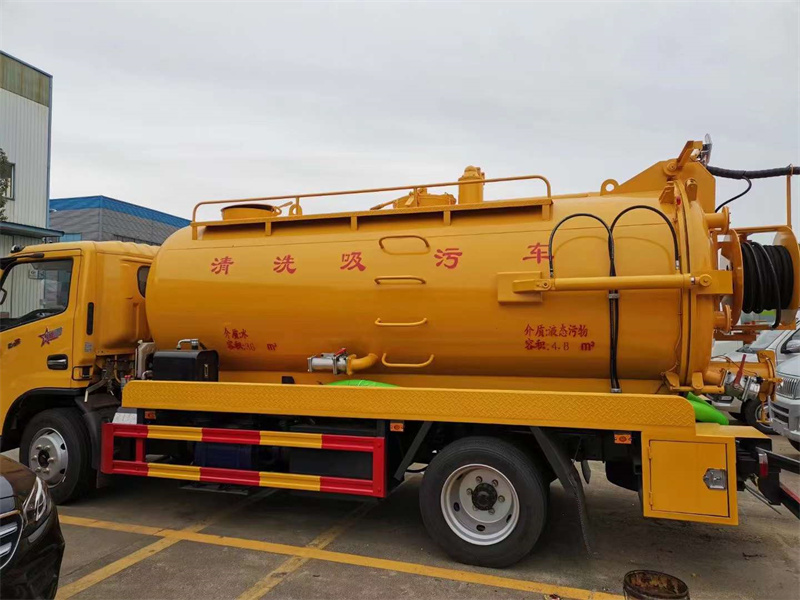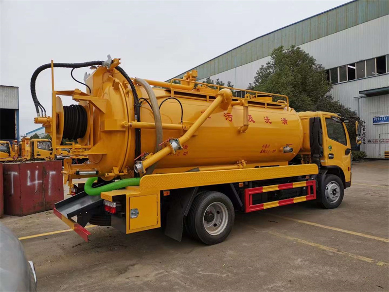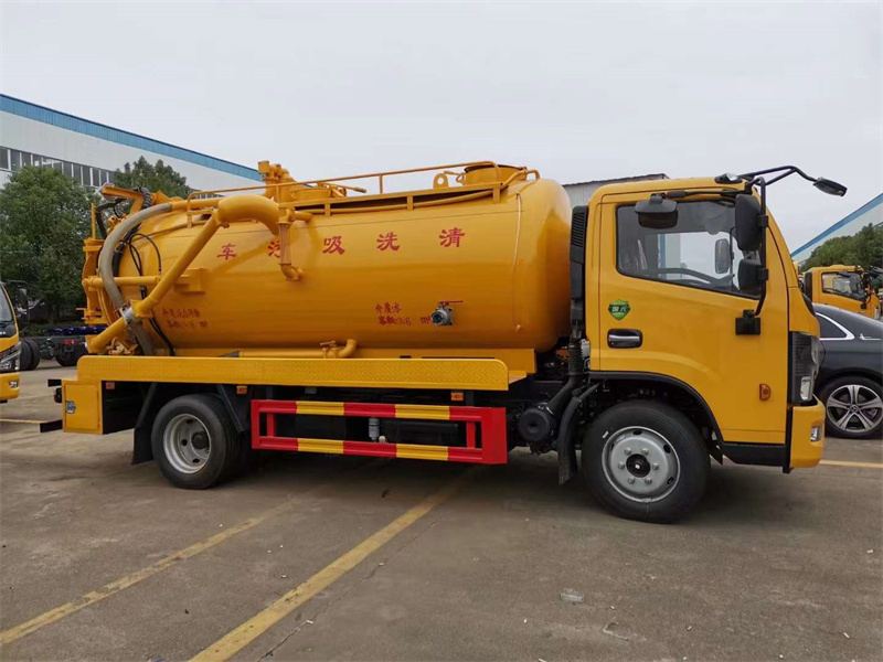 東風(fēng)多利卡D7清洗吸污車圓形一體罐總?cè)莘e約10立方,清水倉(cāng)3方,其余為污水倉(cāng),采用6mm厚碳鋼板制作。清水倉(cāng)頂部水車罐口,兩側(cè)防滑平臺(tái)、護(hù)欄;清水倉(cāng)兩邊接DN65消防球閥,右側(cè)水污互通帶過濾網(wǎng),左側(cè)裝一個(gè)補(bǔ)水球閥;清水罐底部排水閥2、高壓清洗:品孚215流量高壓泵,不銹鋼過濾桶,高壓泵低處安裝排水球閥,帶氣吹閥。高壓三通閥及多路閥裝在后卷盤上,壓力表朝上。