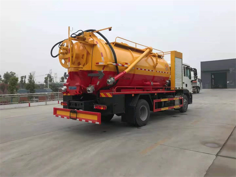 豪沃清洗吸污車選裝安裝SK-42水環(huán)泵配420馬力副發(fā)。卷盤裝后封頭180度旋轉(zhuǎn),后封頭液壓打開。