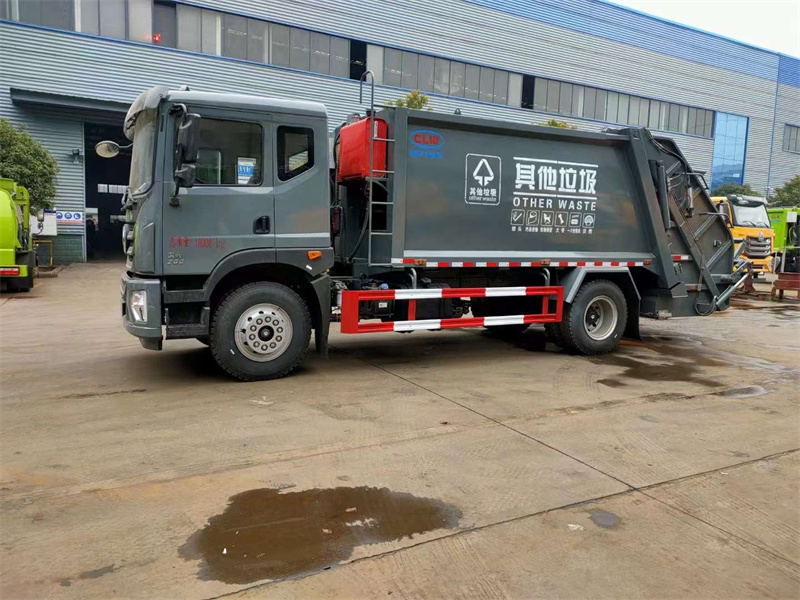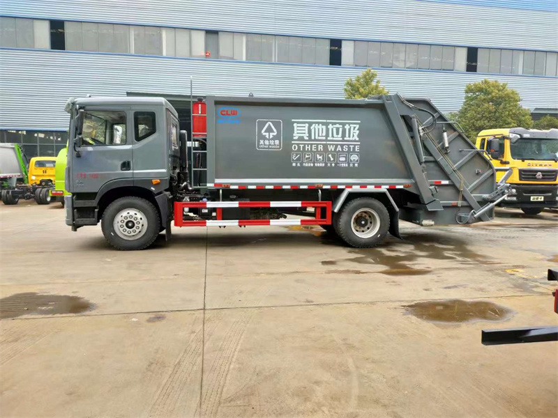 上裝配置:箱體容積13方,采用Q345錳鋼板制作,邊四底五,機(jī)器人自動化焊接工藝,博利油缸,皖液油泵,江蘇中梅多路閥,全液壓操作,帶背壓閥,雙向平衡閥,液壓油管,電控系統(tǒng)采用西門子PLC電控系統(tǒng)(采用光電開關(guān),帶一鍵操作和手動操作兩種控制模式,駕駛室一個控制盒),帶遙控器,一個照明燈,大梁側(cè)邊一個污水箱,填充器底部一個污水箱,保證箱體無泄漏污水,尾部240L翻轉(zhuǎn)機(jī)構(gòu),帶氣動密封蓋。其余標(biāo)配。