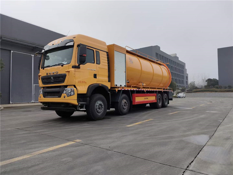 程力汽車重汽豪沃前四后八33方清洗吸污車,程力牌CL5313GQWZ6CC 新清洗吸污車,底盤配置:曼  發(fā)動機430馬力,輪胎:12.00R20,底盤后橋加固(四騎馬螺栓),液壓懸置、空氣主座椅、駕駛室手動翻轉(zhuǎn)、金屬保險杠、電動空調(diào)、電動搖窗機、國產(chǎn)轉(zhuǎn)向機、國產(chǎn)離合器、備胎架、變速箱后取力。