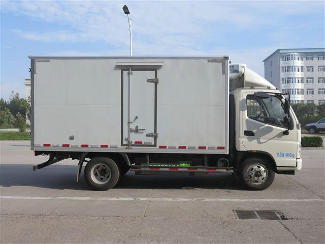 福田奧鈴國五冷藏車底盤采用1995豪華車身,云內(nèi)國五CNG115馬力,5檔,5T后橋,7.00R16輪胎,帶動轉(zhuǎn),氣剎,排氣制動,感載比例閥,收錄機+AUX接口,冷藏廂體采用內(nèi)外玻璃鋼,中間夾層保溫材料采用聚氨酯切片真空負壓一次復(fù)合成型;厚度8cm, 符合國家衛(wèi)生部頒布食品等級要求,具有強度高、耐腐蝕、抗老化、導(dǎo)熱性能低、無污染、不容易損壞等特點,底板為鋁合金防滑花紋板,保證底板保溫性能及底板的抗沖擊強度。雙后開門門框架全部采用玻璃鋼制成的整體框架,門板重量輕,防腐性能好。雙后門中縫帶斜度,開關(guān)方便。門邊框密封采用進口優(yōu)質(zhì)橡膠(三元乙丙)密封條進行密封,保證廂體保溫效果的穩(wěn)定性,門邊,門鎖及附件均為不銹鋼制作。