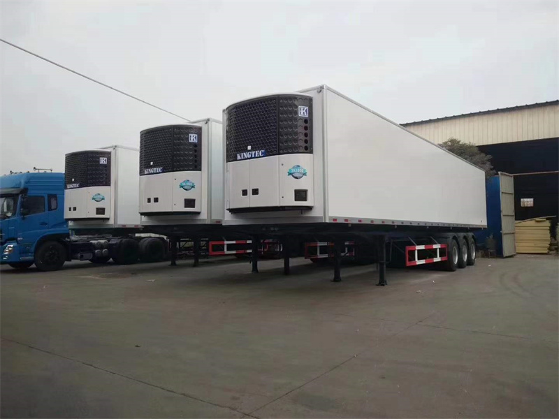廂體材質(zhì)為內(nèi)外玻璃鋼板制作,中間10CM厚聚氨酯保溫板,高強(qiáng)度環(huán)保天然樹脂膠,采用國內(nèi)先進(jìn)的16米液壓壓板機(jī)壓制一次成型,鋁合金型材包邊,門框、門鎖件為不銹鋼,底板上鋪鋁合金通風(fēng)槽,廂體右側(cè)中靠前開單側(cè)門,選裝國內(nèi)知名品牌凱雪、進(jìn)口美國開利或美國冷王獨(dú)立制冷機(jī)組,最低溫度可達(dá)-18度,
