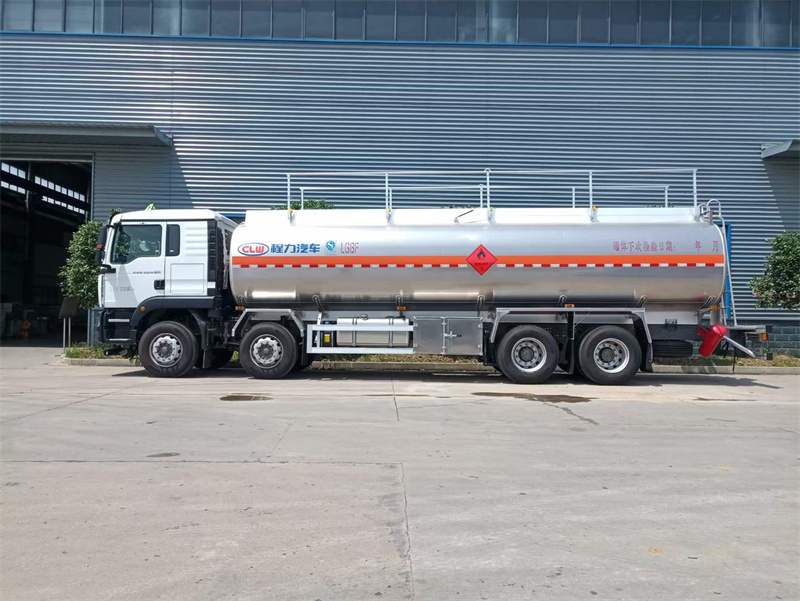 重汽汕德卡前四后八鋁合金油罐車,有效容積30.4立方。