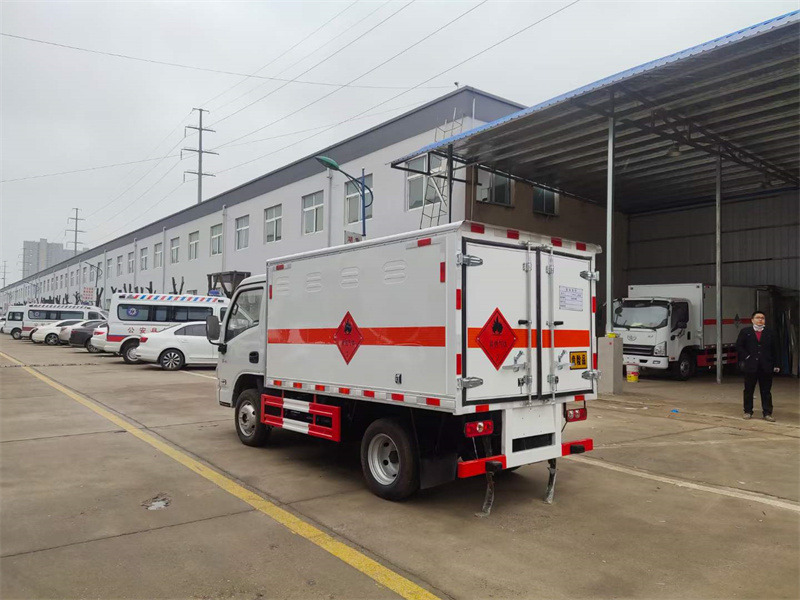 廂體配置:嚴格按照公告尺寸制作,外板采用1mm厚冷軋板有一次性成型的百葉窗,內(nèi)飾為導電性能良好的鋁板有透氣孔,內(nèi)襯為矩形管骨架牢靠穩(wěn)定,內(nèi)部填充為透氣防潮阻燃的擠塑板,四種材料經(jīng)現(xiàn)代工藝復合而成,廂體外部上下鋁合金型材包邊,底板和車廂前下部鋪橡膠皮,后門雙開,右側前部單開門,嚴格按照國家危險品相關法規(guī)張貼。