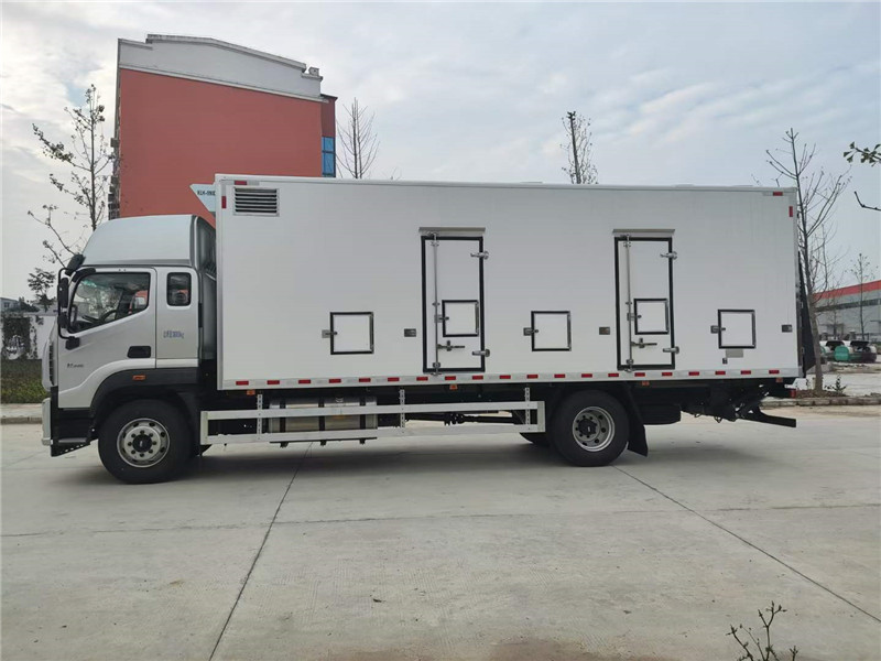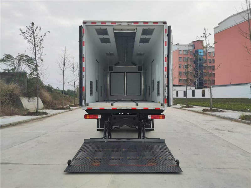 (3)廂體配件:廂體周邊鋁合金包邊,不銹鋼包角,不銹鋼門鎖,不銹鋼門框及合頁(yè),廂體內(nèi)節(jié)能LED照明燈,廂體左右共5扇單開門,廂體靠前帶隔倉(cāng)。