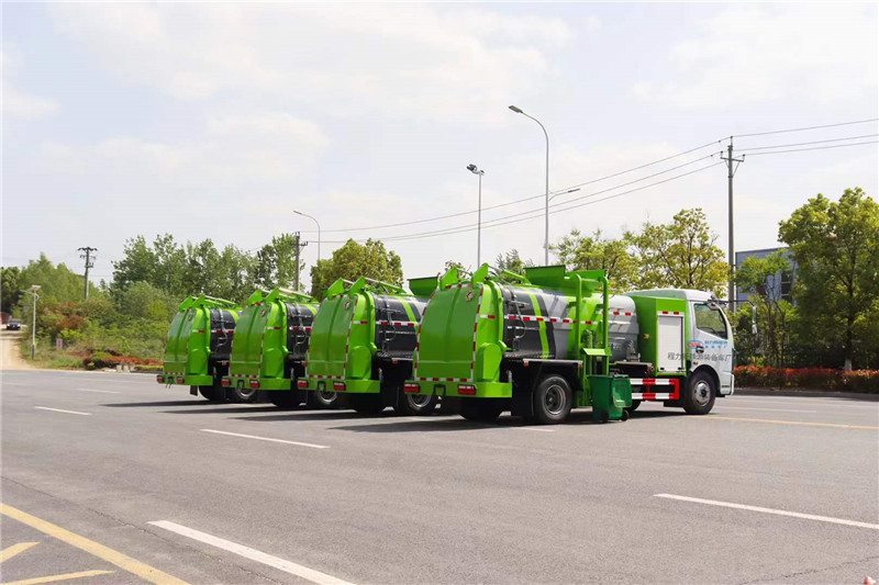 程力電動餐廚垃圾車底盤電池提供動力,永磁同步電機驅(qū)動,可根據(jù)需要實時調(diào)速,取力操作與底盤行駛系統(tǒng)無任何關(guān)聯(lián),用車體驗感極佳。優(yōu)質(zhì)高強度 Q345 錳鋼制作無泄漏箱體,標配:1.弧形罐體,邊四底五/邊五底六。2.長源/皖液油泵,長源/中梅多路閥,知名液壓油缸。3.全推鏟卸料(不帶舉升功能),具有干濕分離功能。液壓后蓋,后蓋配防腐硅膠密封條。4.后門液壓鎖緊5.鏈條式提升機,可掛120/240升標準塑料垃圾桶。進料口蓋液壓開關(guān)。6.駕駛室內(nèi)電控(提升機外部手動控制),后門鎖緊與后蓋開關(guān)的操作具有防誤操作。7.箱體帶清洗裝置(液壓馬達帶動高壓泵、帶水箱)。