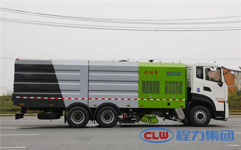 程力牌CL5250TXS6QZ洗掃車!4350+1350軸距!天龍后雙橋洗掃車公告樣車、低價處理!環(huán)保免征齊全!程力公司掃路車專業(yè)廠!