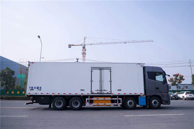 冷藏車配置:EST高頂標(biāo)準(zhǔn)地板駕駛室,康明斯490馬力發(fā)動機(jī),排量11.8L,采埃孚1 6擋鋁殼變速箱,發(fā)動機(jī)10里萬程長換油,康邁免維護(hù)后鉛橋,氣囊橋,速比: 3.364,扭矩為: 2300N.m,輪胎規(guī)格: 12R22.5真子空午扭矩為: 2300N.m,輪胎規(guī)格: 12R22.5真子空午|胎,600L鋁合金油箱,全浮四氣囊減震;氣囊主座椅;電動電加熱后視鏡; 電動駕駛室翻轉(zhuǎn); MP5;遙控中鎖;車聯(lián)網(wǎng);電動玻璃升降;多功方能向盤,定巡速航,多媒體顯示屏,五T雙前橋,10T單級減速后雙橋,|差速鎖,整體式動力轉(zhuǎn)向器,自動調(diào)整臂,四通道ABS,其他標(biāo)配。