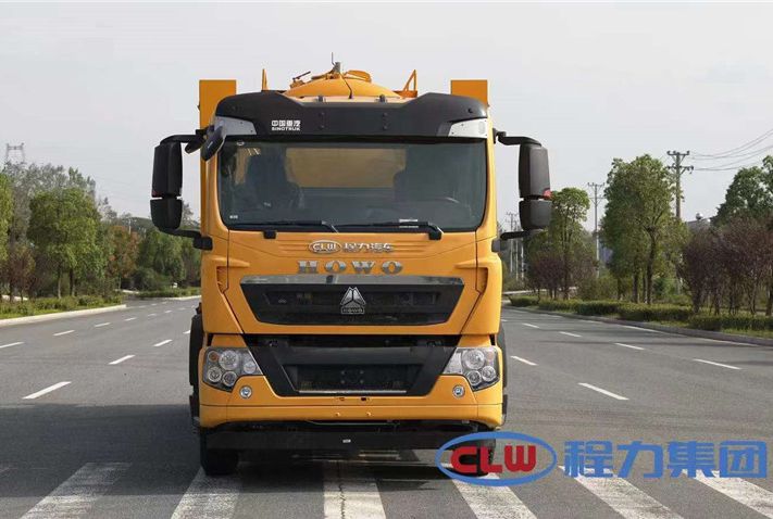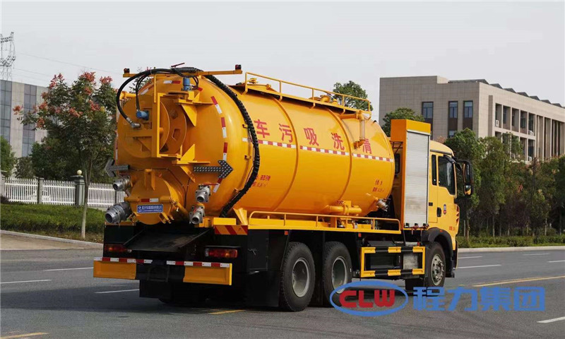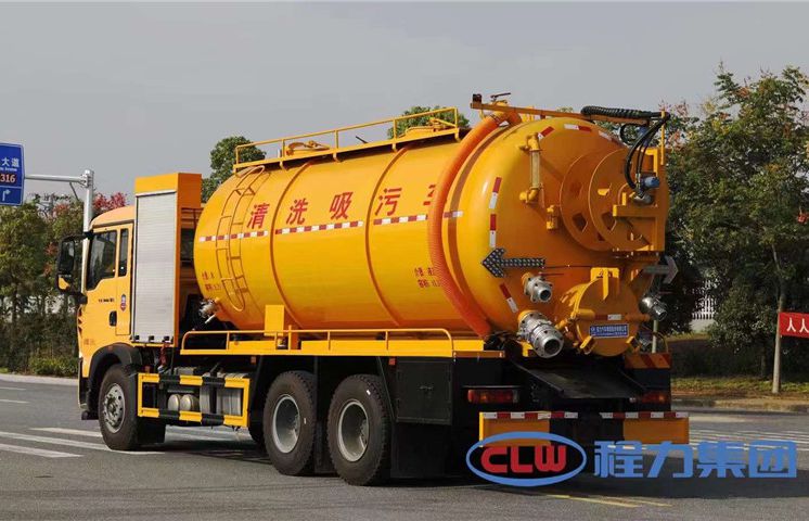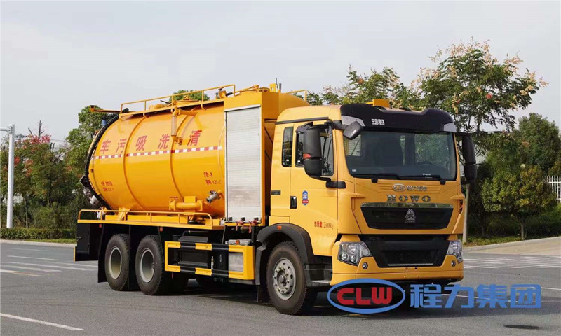 程力22方清洗吸污車整車型號為CL5251GQW6CC型重汽豪沃后八輪清洗吸污車,德國曼350馬力。