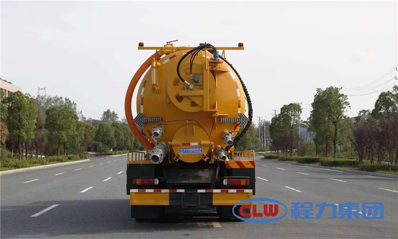 程力專汽清洗吸污車上裝配置:罐體容積22立方左右,清水罐8.5立方,其余為污水,罐體8mm厚,封頭8mm厚,舉升頂為自卸中置頂,副駕駛一側(cè)清水罐和污水罐用DN100球閥互通,另罐頂裝一個互通,副駕駛一側(cè)按照公告圖片安裝爬梯;
