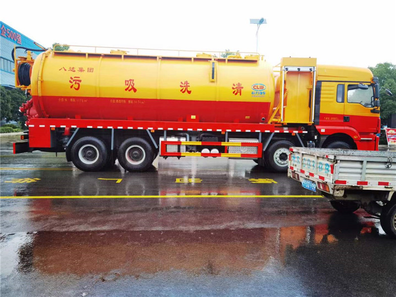 清洗吸污車上裝配置:罐體總?cè)莘e約33立方,清水箱約10立方,其余為污水罐,加強(qiáng)大架,兩倉互通,采用8mm碳鋼制作,吸污部分,副發(fā)采用斷袖取力器配42水循環(huán)泵,8米吸污管,罐體兩側(cè)加寬平臺加護(hù)欄,后部開一個(gè)800mm液壓開啟排污口,一個(gè)150排污球閥,和一個(gè)100的排污球閥,100內(nèi)抽球閥,偷排150球閥,后部左右各一個(gè)箭頭燈,配品浮350流量,配100米內(nèi)徑25定制耐磨高壓管,卷盤液壓左右旋轉(zhuǎn),配10公斤槍頭一個(gè)。整車顏色:黃/紅