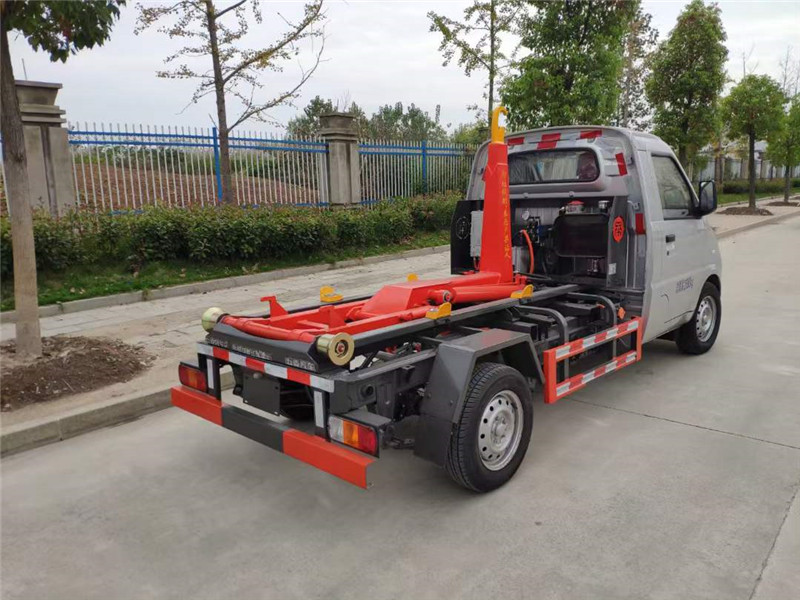 1-1.5噸鉤起能力,12兆帕系統(tǒng)壓力,12V控制電壓,20L液壓油箱容積,導(dǎo)軌寬度900MM,鉤箱時間45S,鉤心高度1000MM,鉤心到后滾輪距離1850MM,配套2.5-3立方垃圾箱