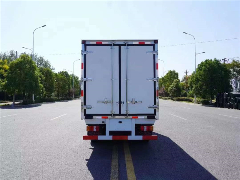 藍牌江鈴冷藏車上裝配置:搭配-5℃或-18℃國產(chǎn)/進口制冷機組,廂體采用內(nèi)外優(yōu)質玻璃鋼板,間8CM高密度XPS保溫層,廂體骨架采用鋼木框架,新工藝斷橋隔熱保溫結構,可選裝內(nèi)不銹鋼廂體,門鎖及鉸鏈為不銹鋼成型件,后雙開門,5層迷宮式橡膠密封條,門框斷橋隔熱處理,高強塑鋼花紋防滑底板,底板圍裙選用15cm寬鋁合金底側一體式型材,選裝整體式通風條和右單側門,廂內(nèi)可選裝隔斷溫區(qū),頂部安裝照明燈,其他標配。選裝肉鉤架廂體。選裝備電和外接市電。廂體副車架采用700特鋼折彎貫穿橫梁加固,標準件螺栓鎖緊。整車鋼件獨立烤漆再組裝。